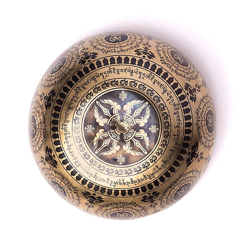 Ročno izdelana pojoča skleda iz bronaste zlitine, z lasersko graviranim vzorcem Rože življenja na sredini , obdana z oročom lotosovega cvetnega lista s sedmimi zlogi čaker in osmim cvetnim listom, v katerem je Metatronova kocka. Osem zunanjih medaljonov ponavlja Rožo življenja, vrzeli pa zapolnjujejo oblačni zvitki, neskončni vozli in motivi gozdov draguljev. Spodnja stranpredstavlja dvojno vadžro znotraj lotosove mandale, obdano s tibetanskim pasom mantre in neskončnimi vozli, stranice pa zrcalijo čakre bijas in medaljone Rože življenja.